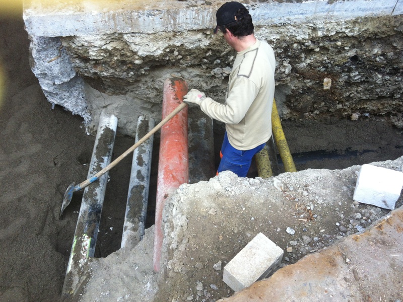 Fleissig wurde gegraben, verlegt, geschweisst und isoliert.Die Baumwärme kann fliessen für die Überbauung Sophienpark.